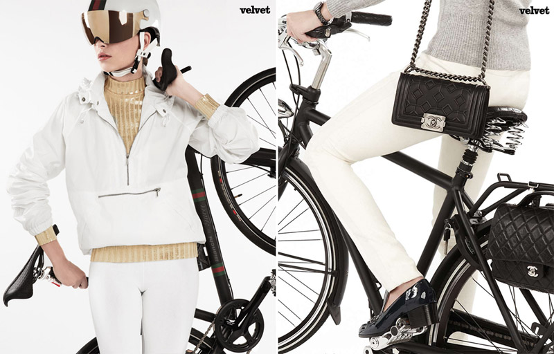 全球都在響應環保議題, 就連精品業也為了符合趨勢, 接連推出高檔單車系列。 Velvet 雜誌這次以時髦單車為主題, model 們分別穿上 Fendi、Chanel、Gucci 、Dolce & Gabbana 與 Paul Smith 等品牌服裝, 並與該品牌發表的單車一同入鏡, 表達出高水準的時尚生活態度。