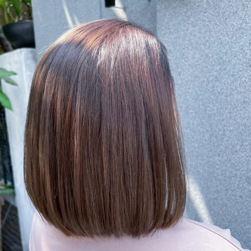 柔順中長髮,透過一刀切帶出自然輕盈的流動感, 溫潤色髮調低調耐看,散發柔和優雅氣質。