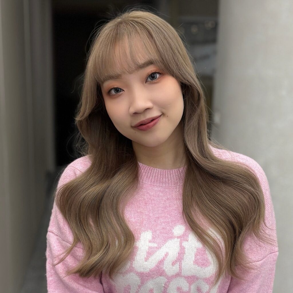 把光線留在髮絲裡,低飽和奶茶色,漂髮後才有的細緻乾淨感。 帶一點溫度的淺色,光線一照,頭髮就很漂亮。