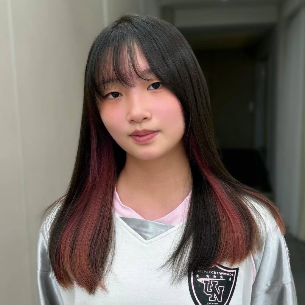 柔和的粉色藏在髮絲深處, 不需要太高調,也能剛剛好的吸睛。 走動時露出一點點色彩, 乾淨又帶點小叛逆的甜酷感。